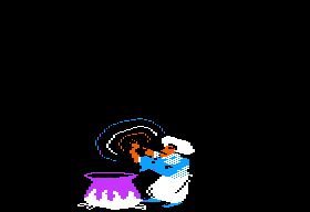 C’est un jeu en texte, mais avec une image animée au-dessus. Il se joue en commandes textes. On se déplace en donnant une direction : “GO NORTH” ou simplement “N” pour aller vers le haut de l’écran, “S” pour bas, “E” à droite, “W” à gauche.