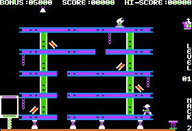 Le personnage n'apparaît, en bas à droite, qu’une fois que la première bombe en est à l’avant-dernière ligne.